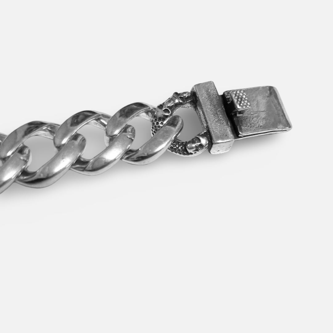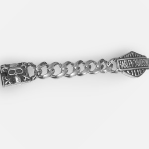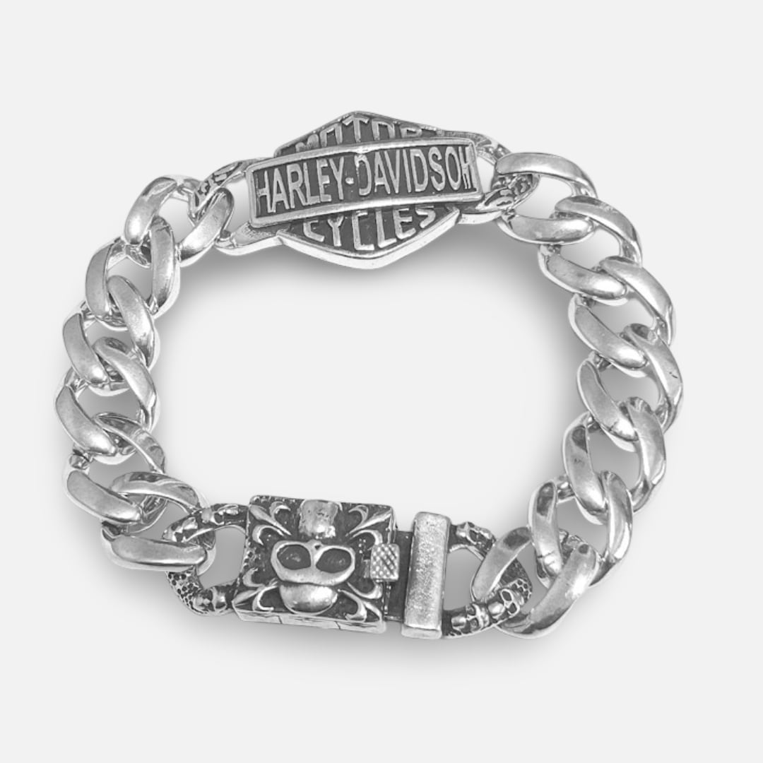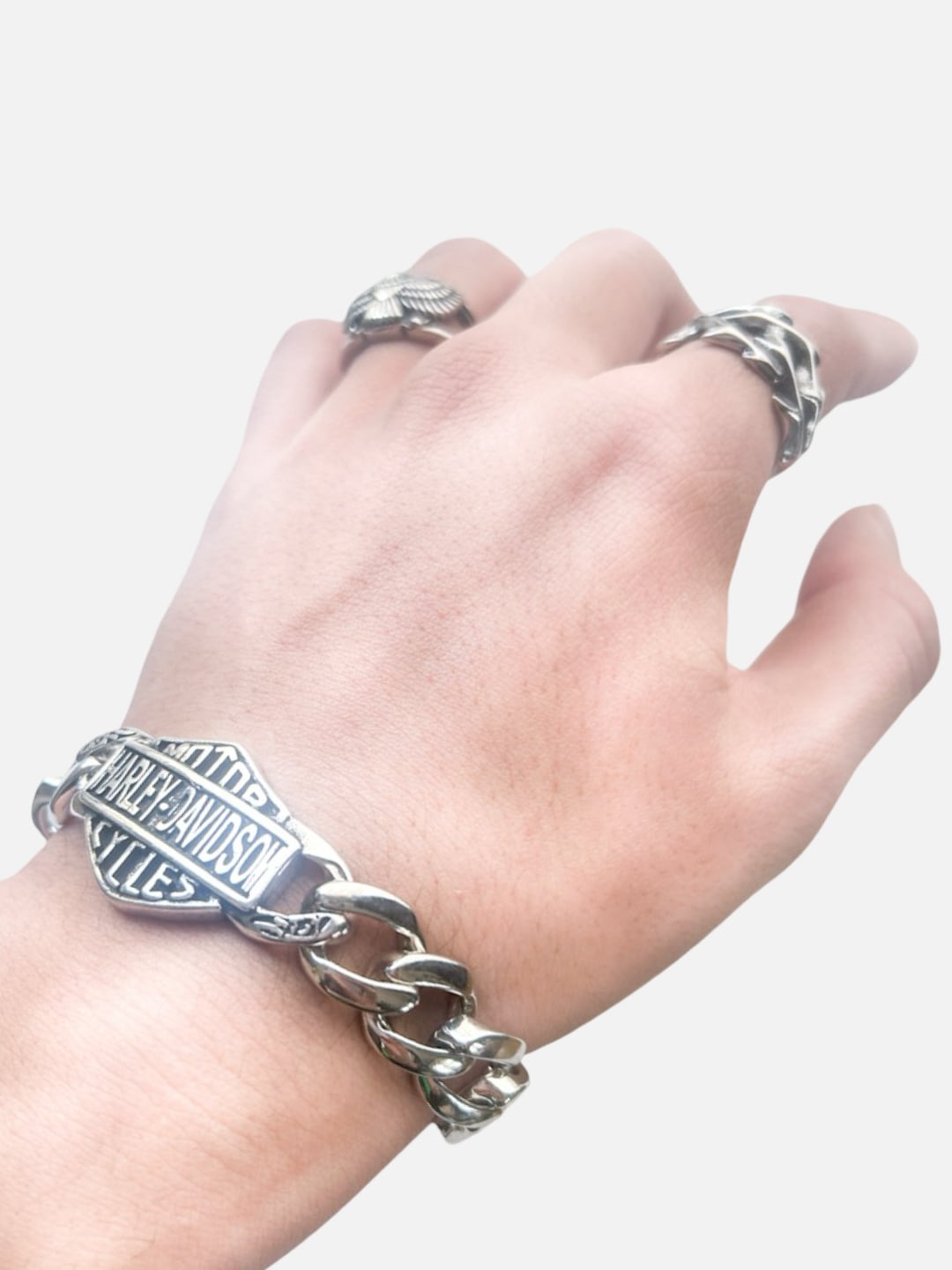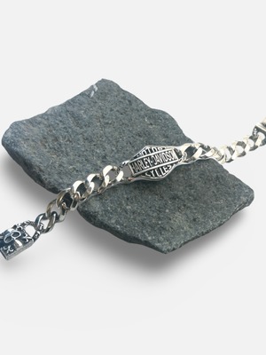 無骨なチェーンとプレートデザインが、男らしい雰囲気を演出。コーデにエッジを加えたい時におすすめのブレスレット。