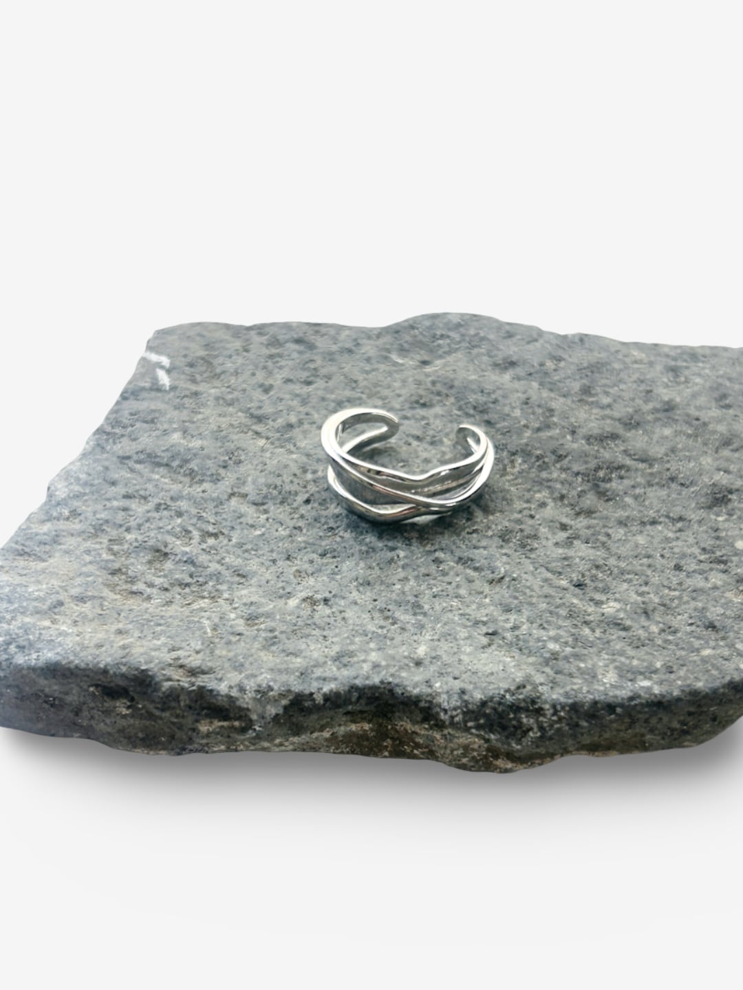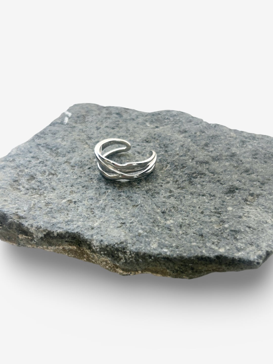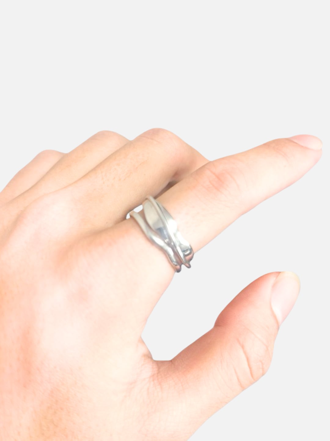 重なり合うフォルムとS925シルバーの質感が、手元に奥行きを演出。