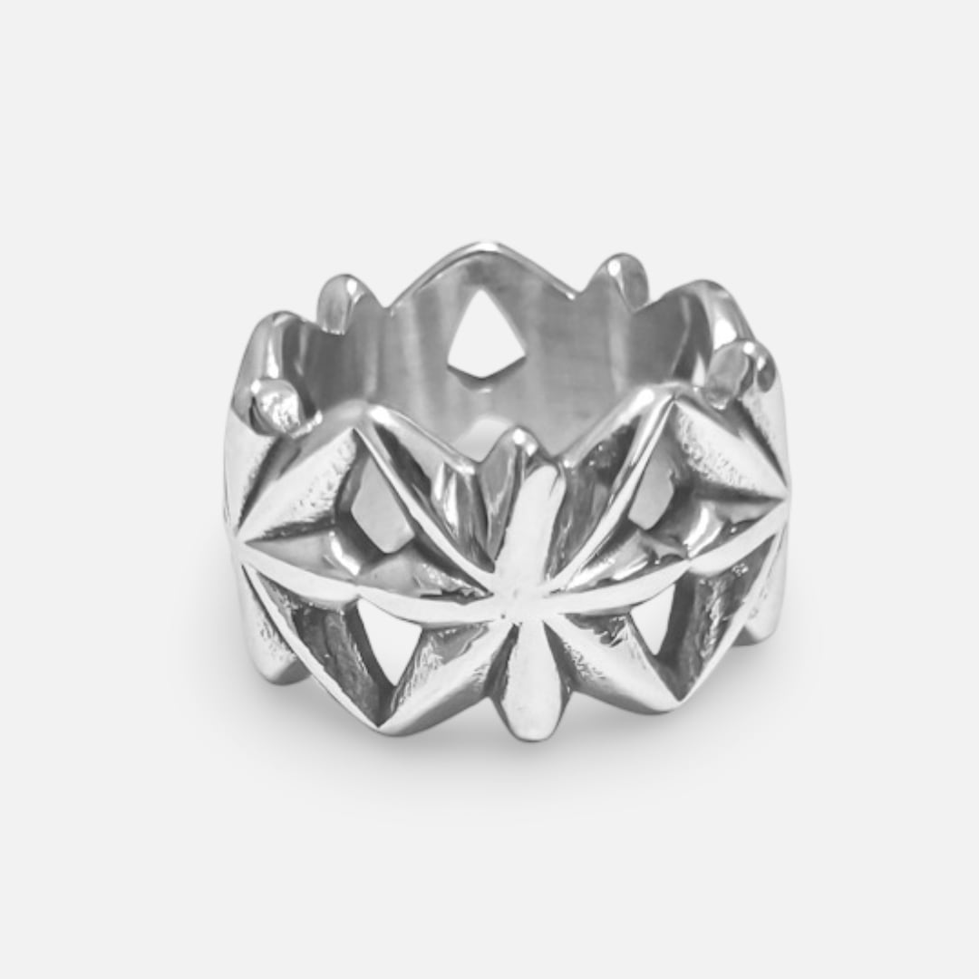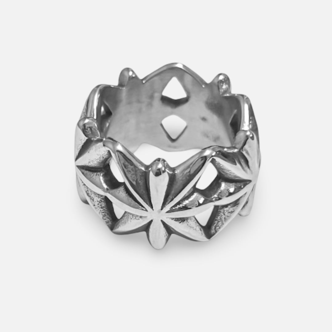 立体的に広がるモチーフが、手元に強い存在感をプラスし、コーデの主役級のアクセントになります。