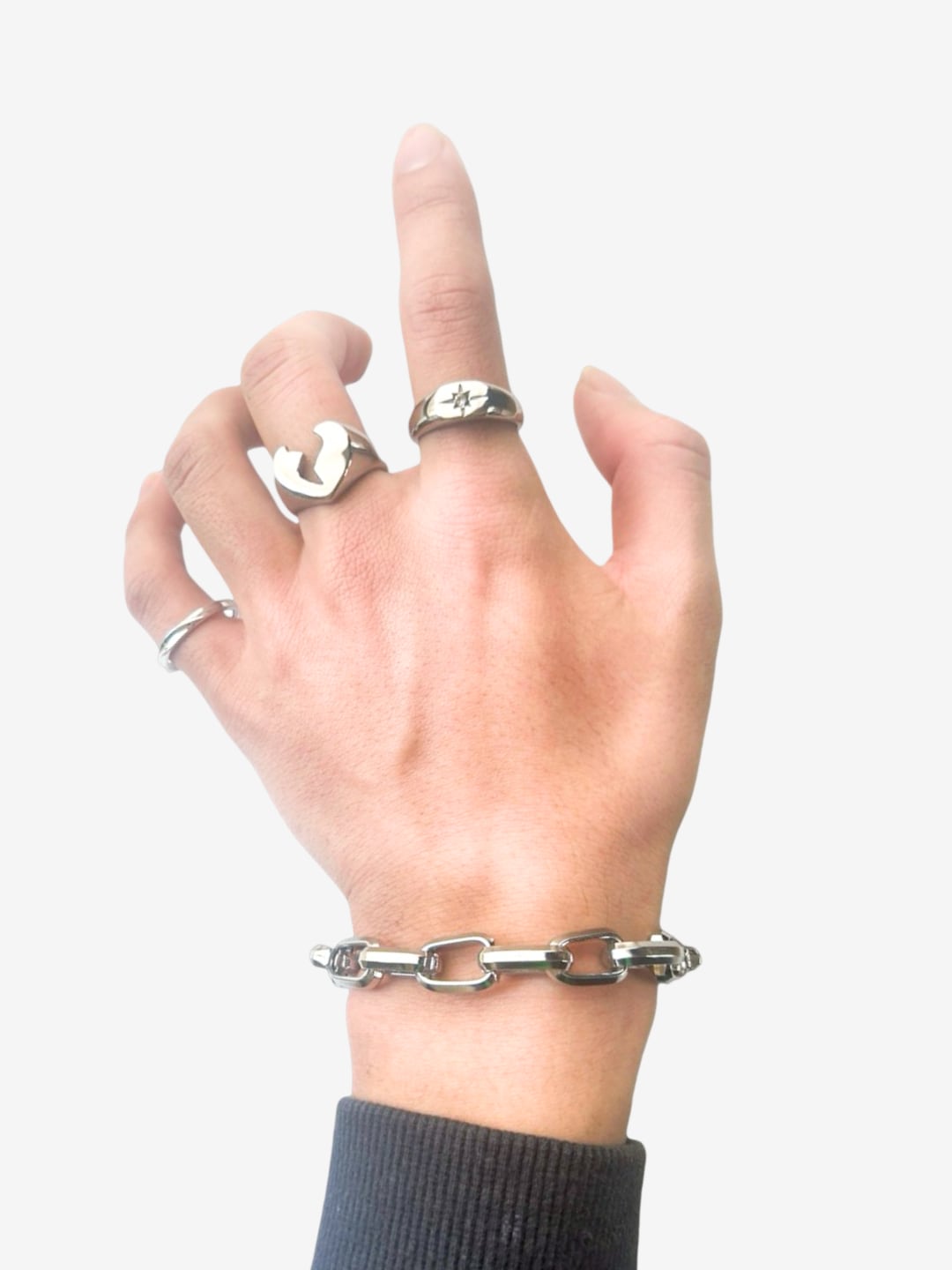 角ばったリンクデザインが、手元にシャープな印象をプラス。