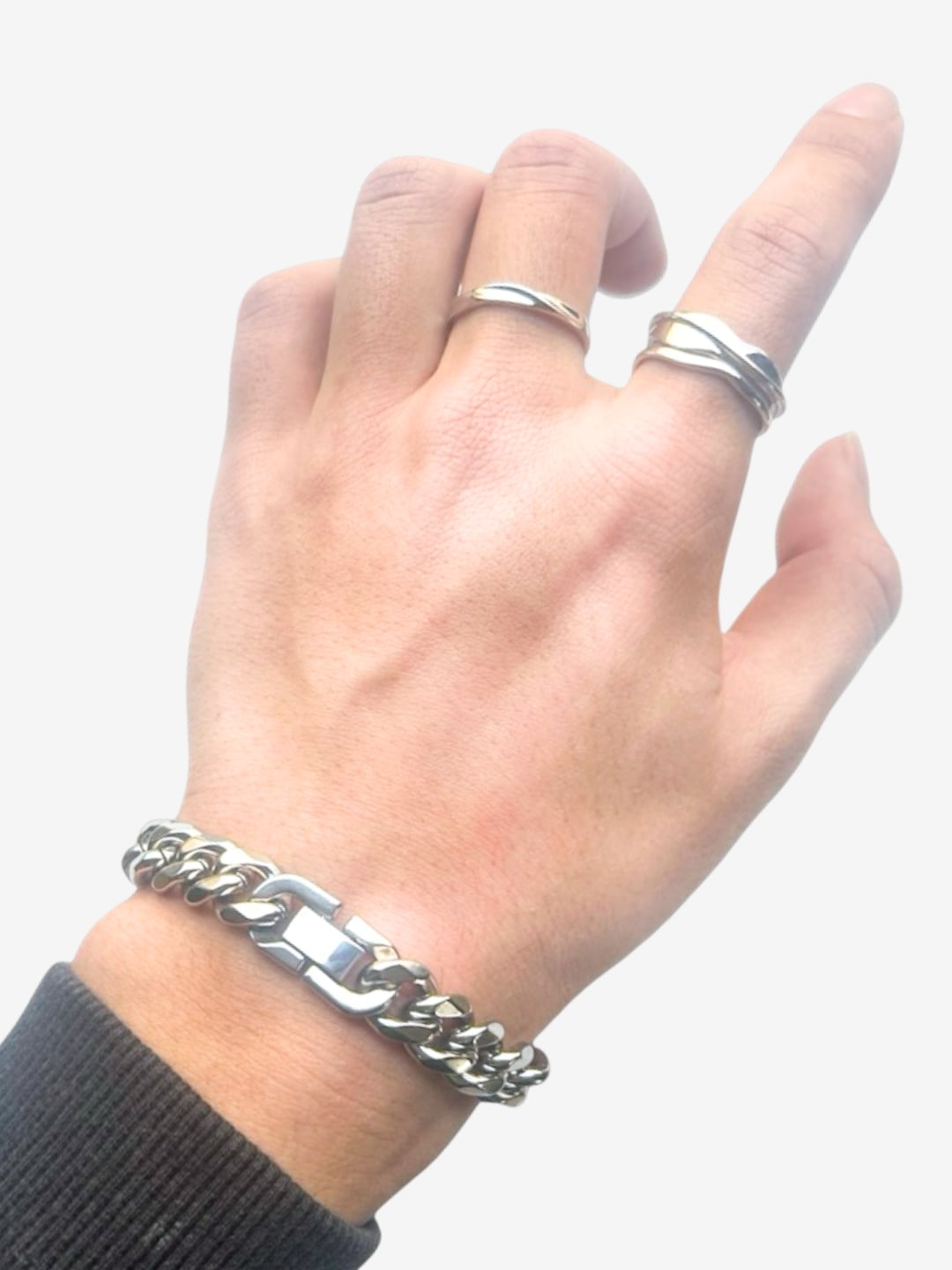 太めのキヘイチェーンが、手元に圧倒的な存在感をプラス。