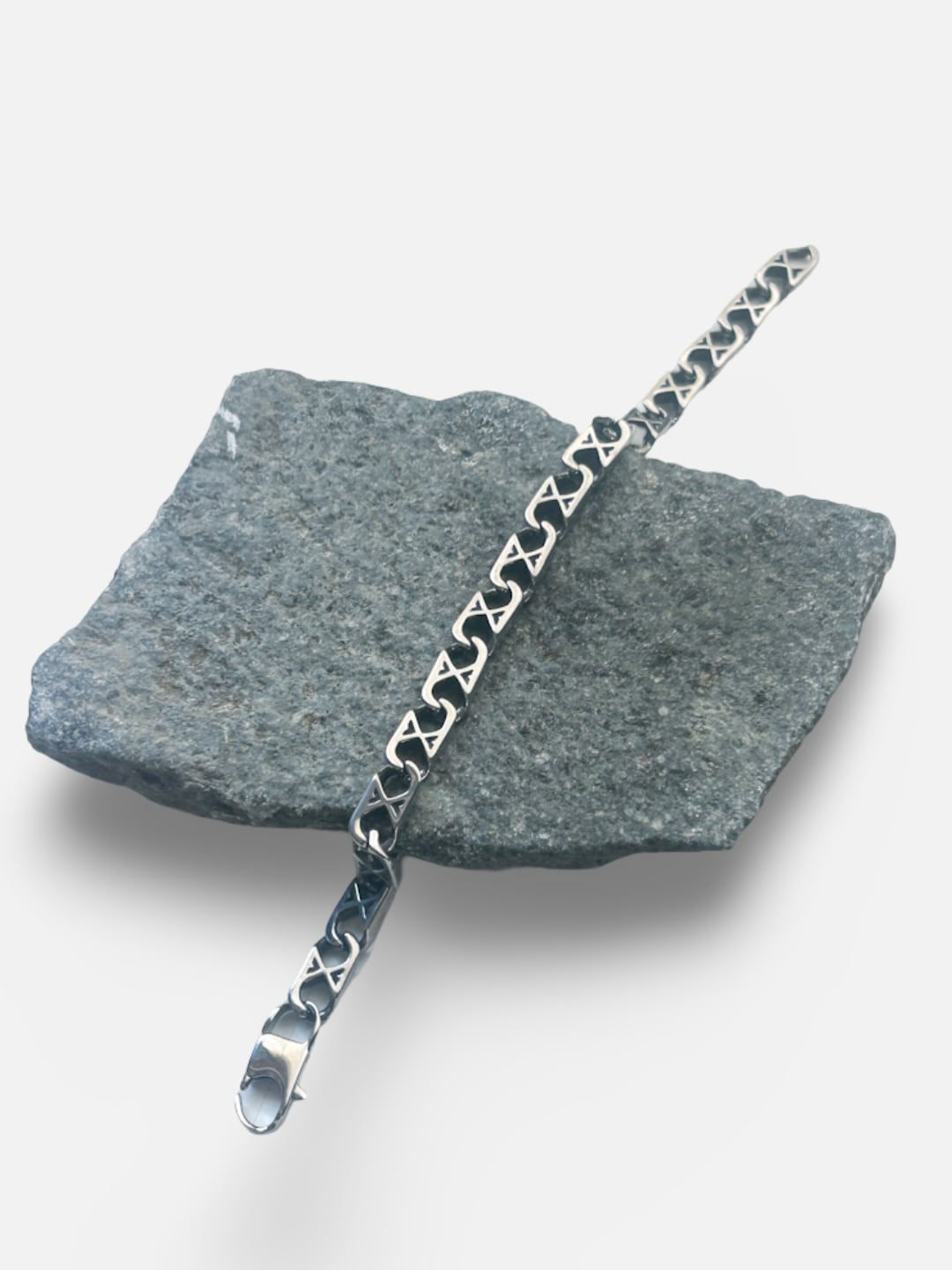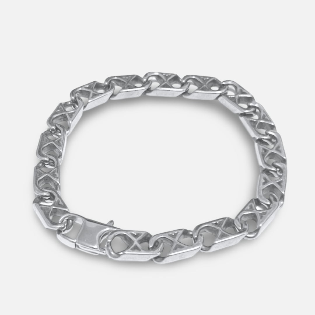 リンク一つ一つに刻まれたクロスパターンが、無骨な存在感を演出。