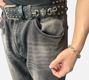 無骨な存在感を放つスコーピオンモチーフが、コーデに強烈なインパクトをプラス。