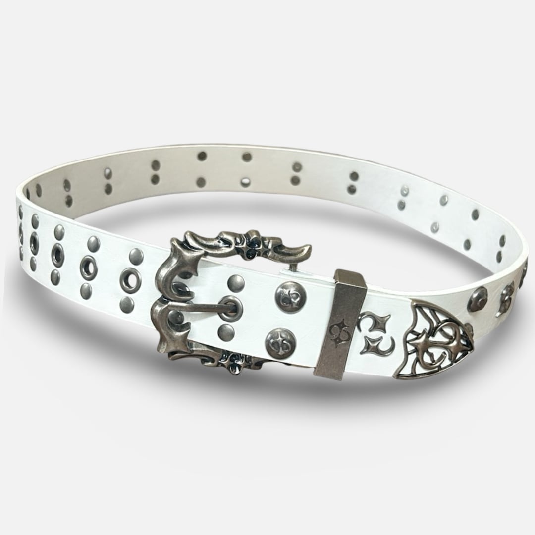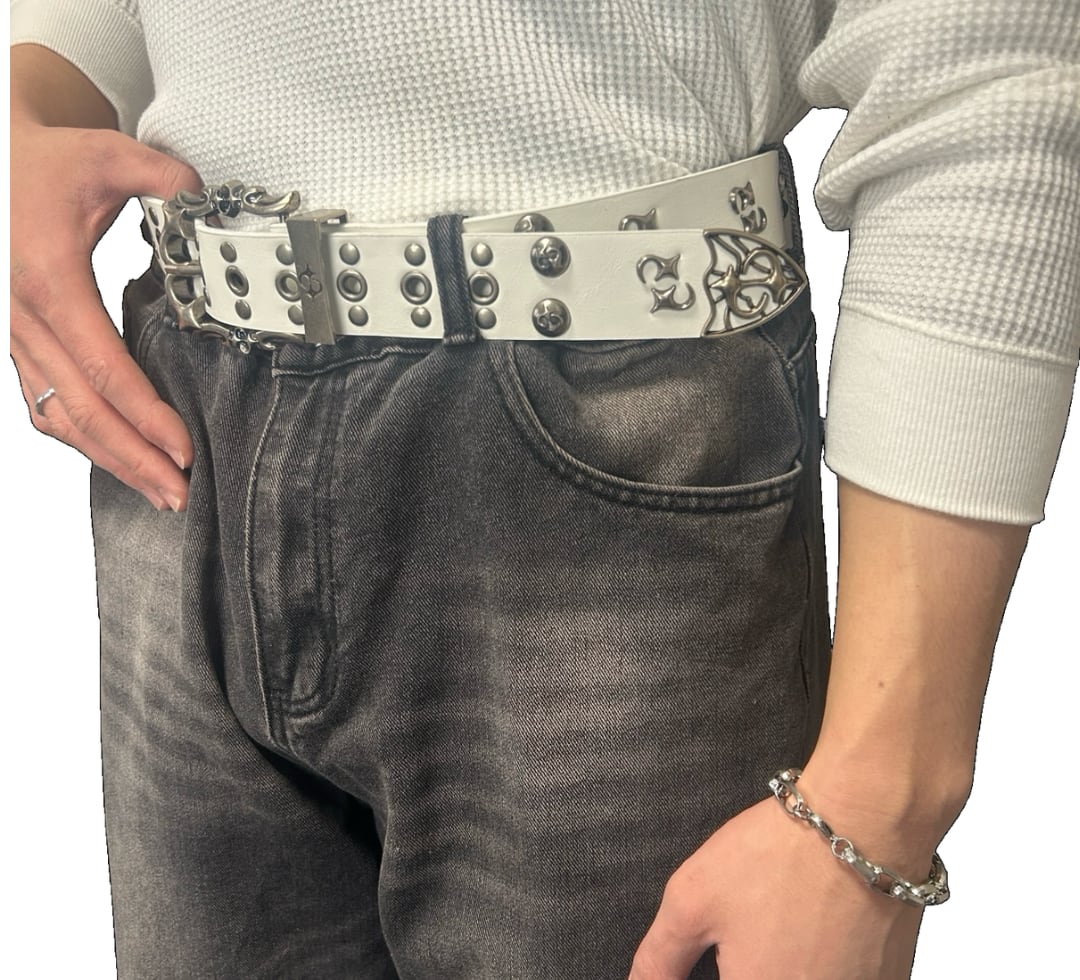 クリーンなホワイトに重厚なメタルが映え、腰回りに強烈なインパクトを与えるデザイン。