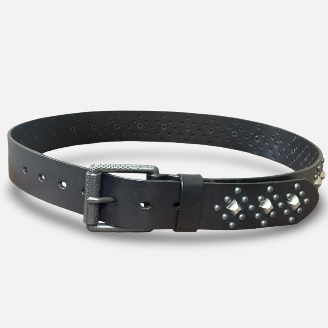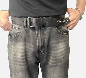 無骨なスタッズが存在感を放ち、シンプルなコーデも一気に引き締める一本。